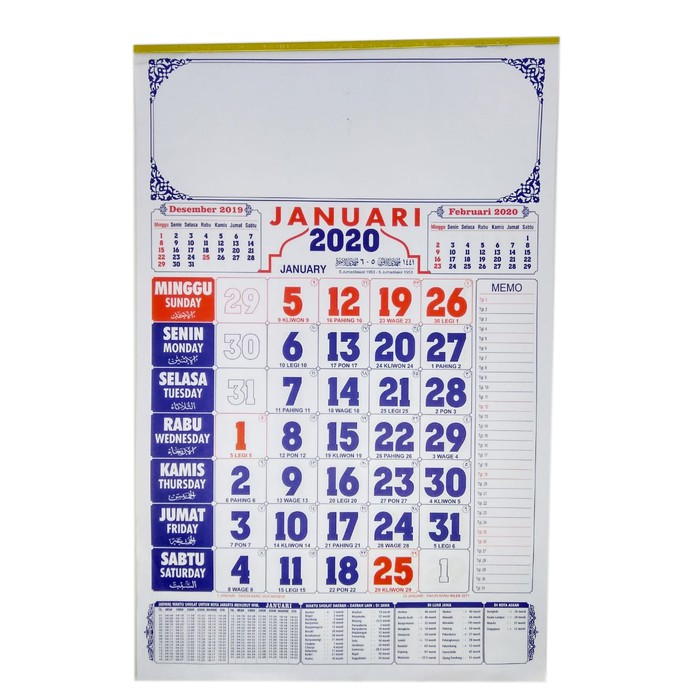 Kalender Dinding 2020 Rumah Kantor Uk Sedang Lengkap Jadwal Sholat Jawa Masehi Cina Arab - Source