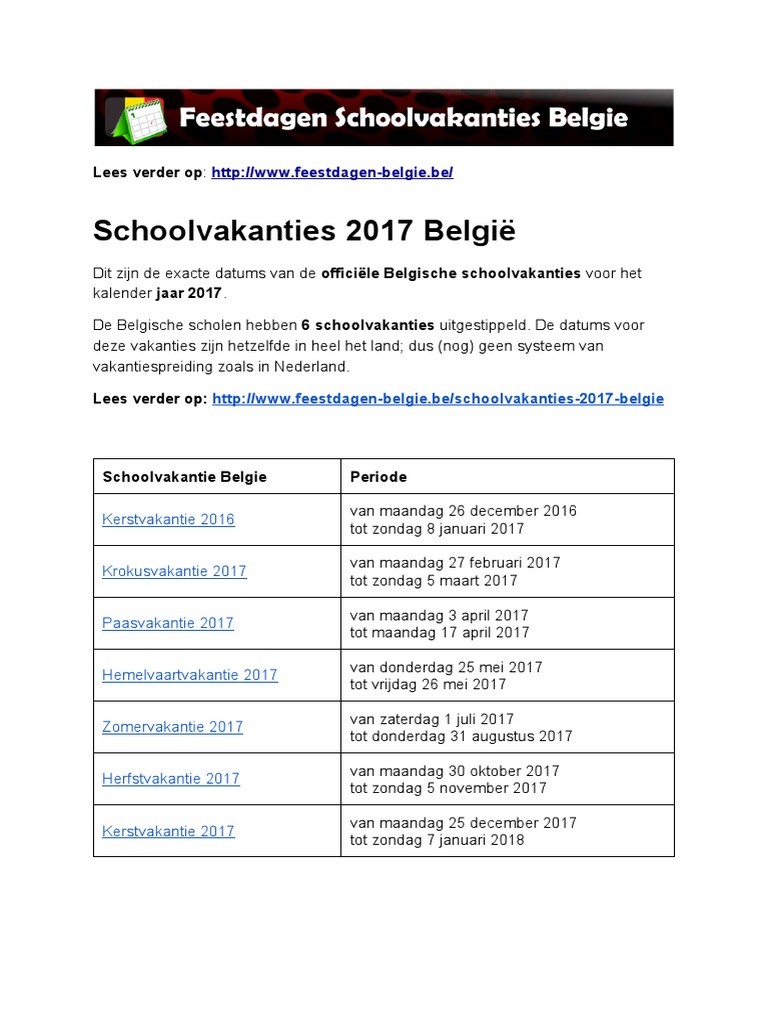 Schoolvakanties Belgie Exacte Datums Op Kalender - Source