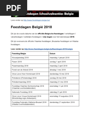 Feestdagen 2018 Belgie Exacte Datums Op Kalender - Source