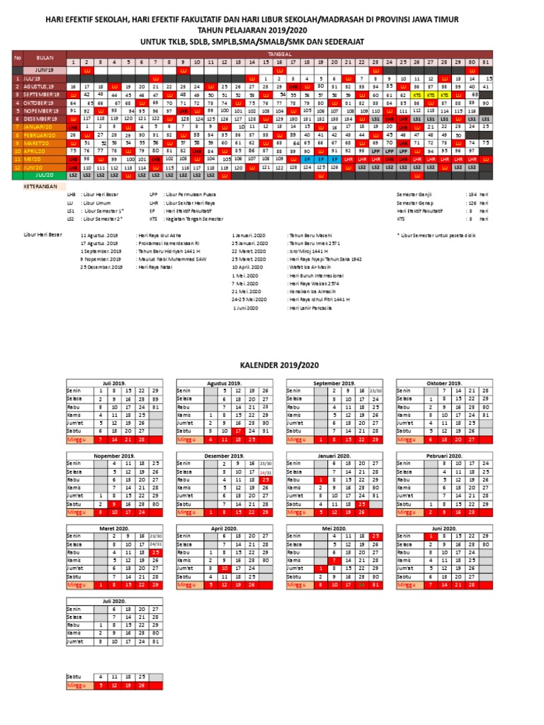 Kalender Pendidikan Tahun Ajaran 20192020 Jawa Timur - Source