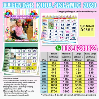Kalendar Kuda Tahun 2020 Horse Calendar 2020 Dengan Senarai Cuti Umum Cuti Sekolah Dan Kalendar Hijrah Size 5 X 5 - Source