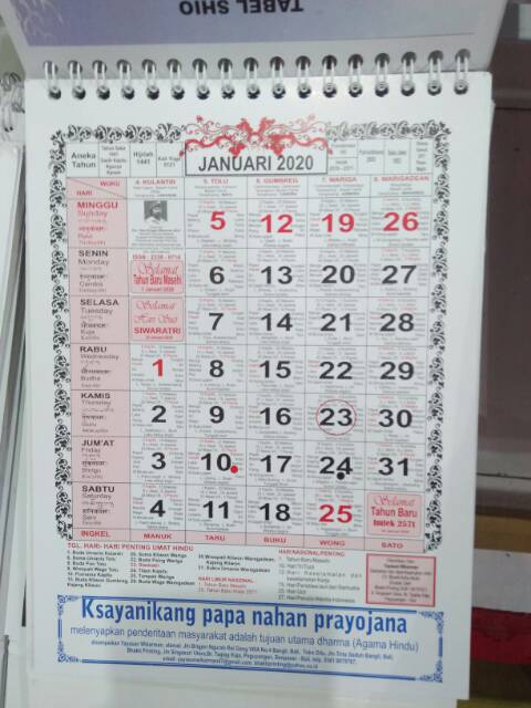 Kalender Jawa Januari 2020 Lengkap Hari Pasaran Dan Wuku Hari - Source