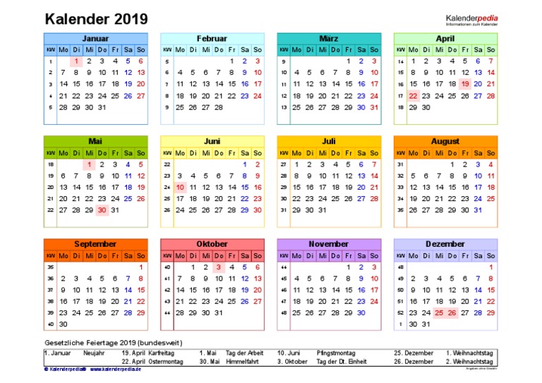 Kalender 2019 Querformat Jahresuebersicht In Farbexlsx - Source