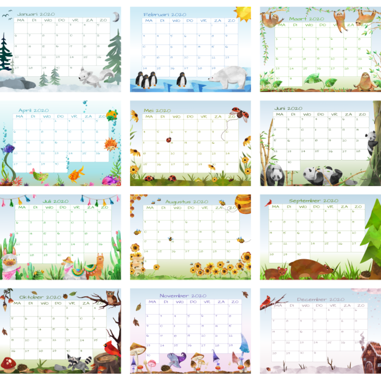 Maand Kalender 2020 Kalenders Adressenboekjes Sillibeads - Source