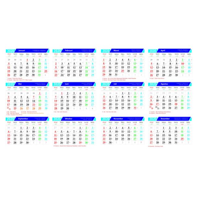 Download Gratis Template Kalender 2020 Lengkap Free - Source