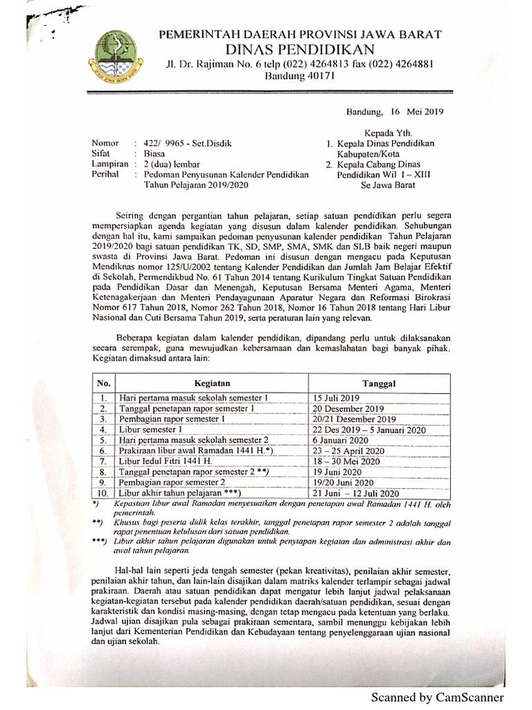 Kalender Pendidikan Provinsi Jabar 2019 2020 - Source