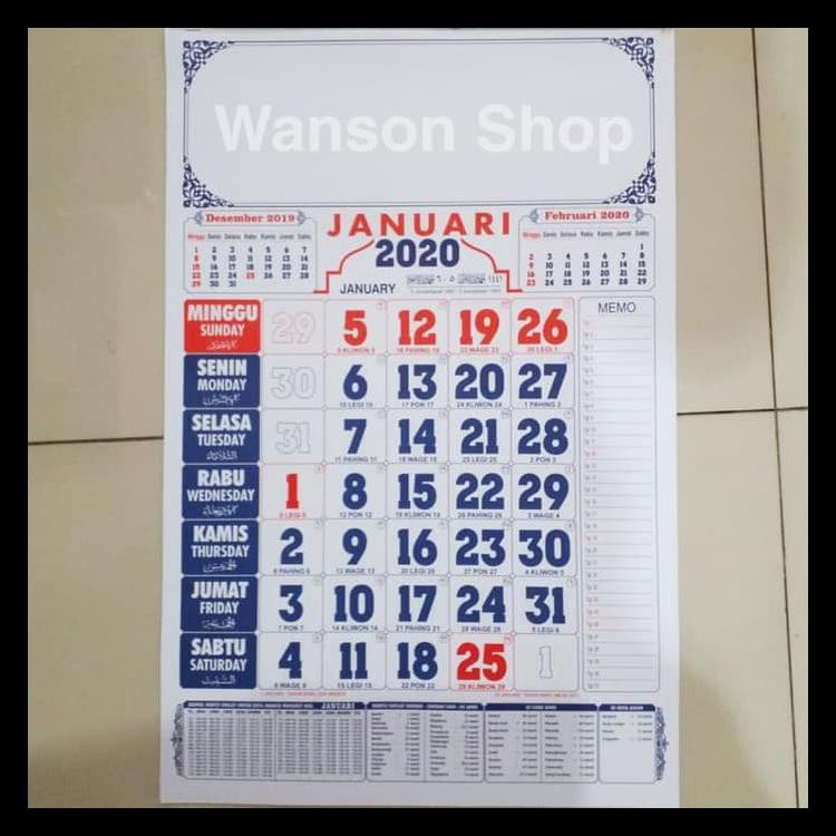 Kalender Dinding 2020 Huruf Arab Ada Pasaran Jawa Grosir - Source